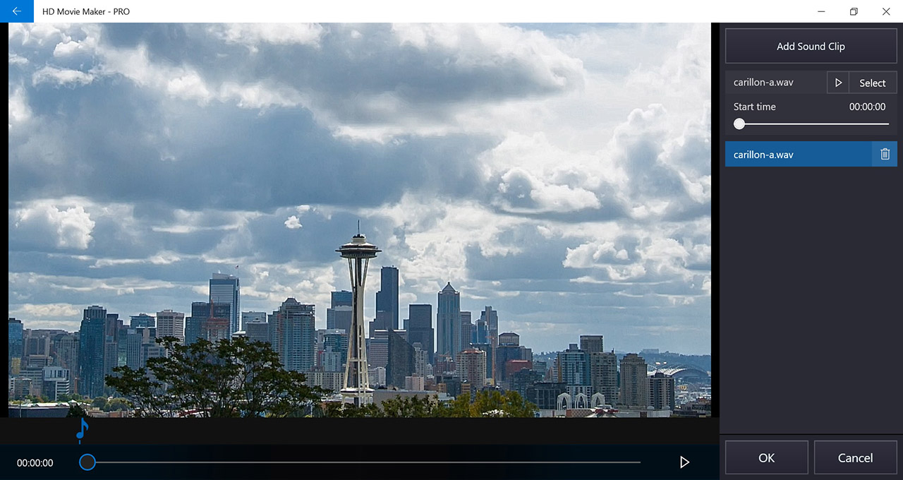 - Select Add Sound Clip to add a sound clip.