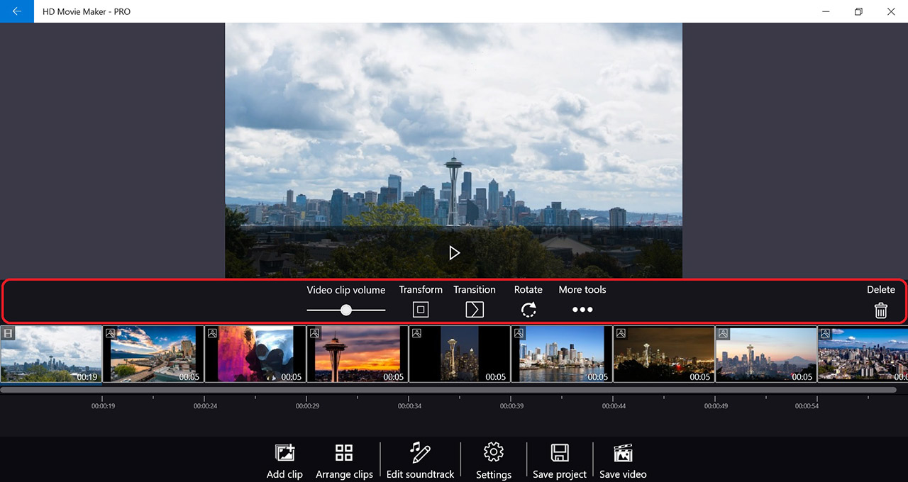 You can set transform and transition effect using the tools in the clip toolbar, or using the All settings page.