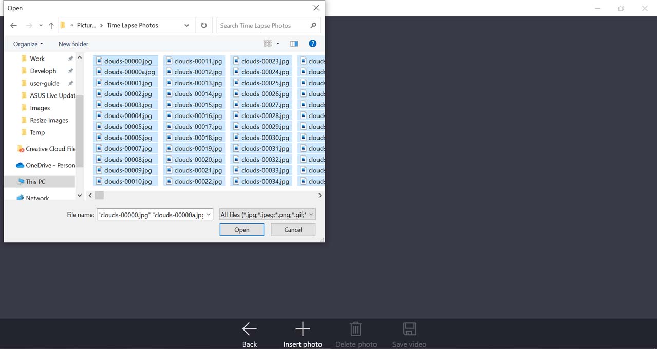 To add photos, click on Insert photos, then choose the photos you want to add.