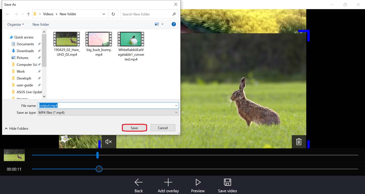 A frame will appear surround the overlay photo/video. Blue indicates the selected while white is not selected.